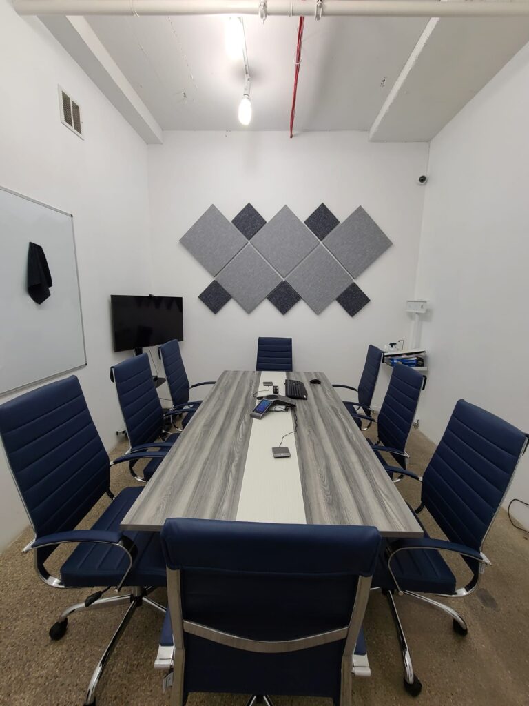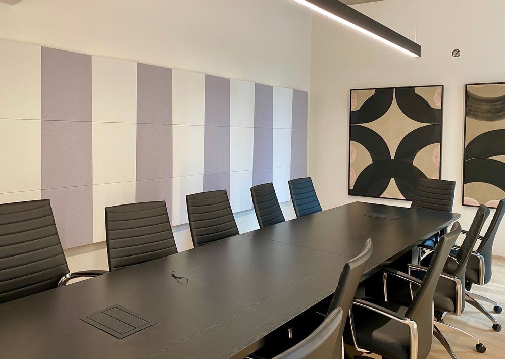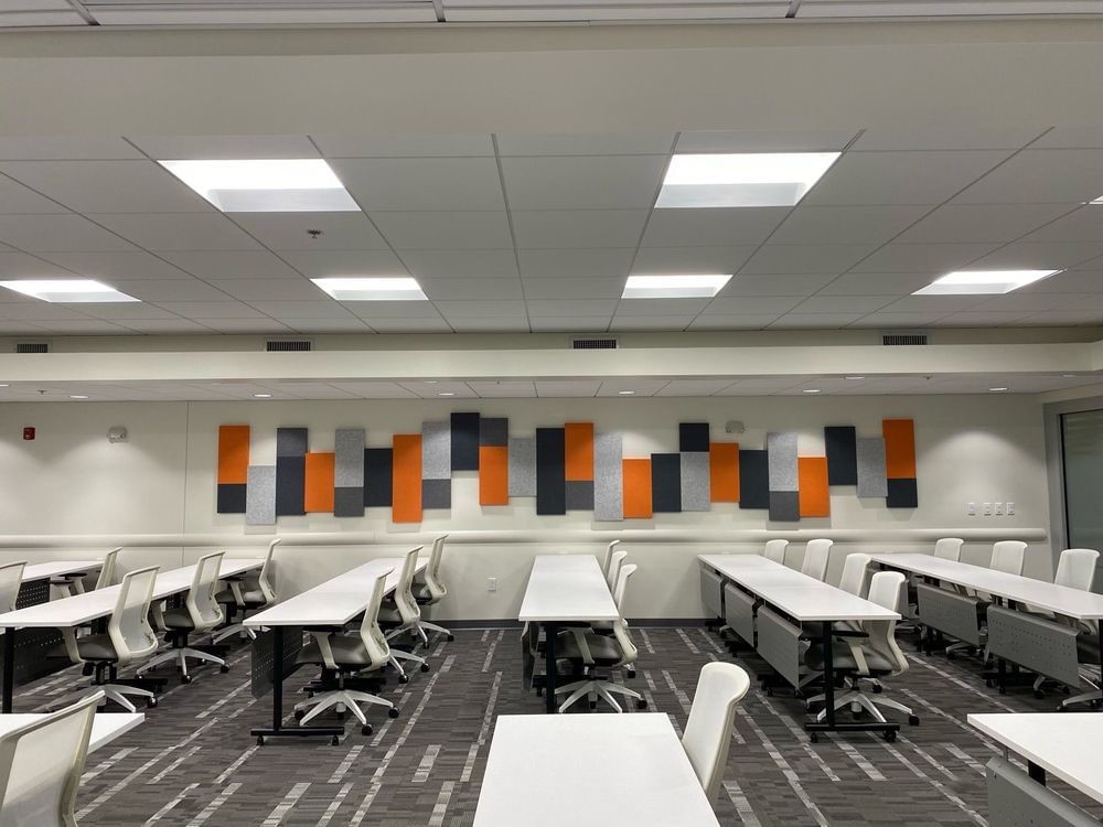 For larger rooms with high ceilings, acoustical baffles are a great solution for echo problems.